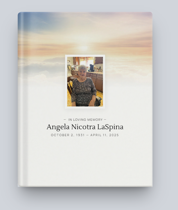 Angela Nicotra LaSpina, beloved wife, mother, grandmother, great-grandmother, and friend, passed away peacefully, surrounded by the love of her family.
