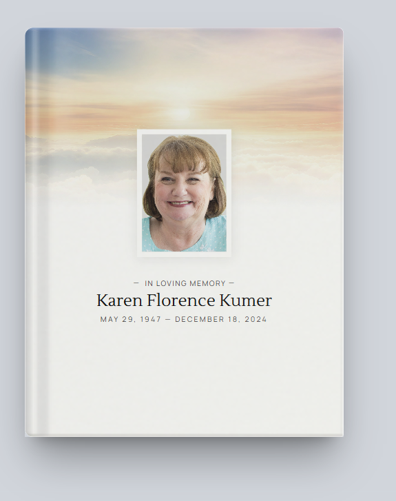 It is with great sadness that we announce the passing of our beloved Karen Florence Kumer, age 77. She passed away peacefully at home on December 18, 2024, with family by her side.