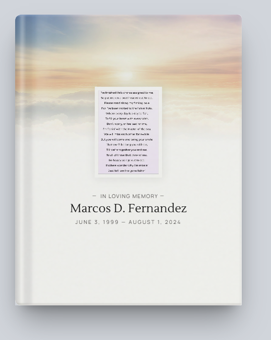 The family entrusted Marcos's care to the Flynn Family and Flynn Funeral & Cremation Memorial Center staff.
